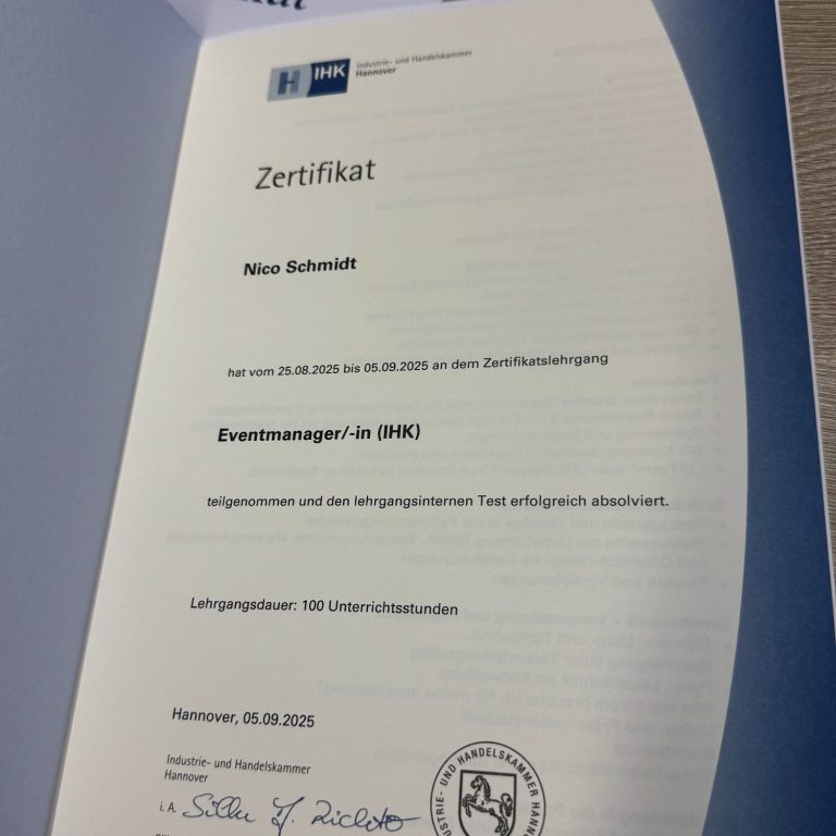 Ich bin Nico Schmidt, Eventmanager IHK, glücklich verheiratet und Papa eines wundervollen Sohnes. Als leidenschaftlicher Eventberater in Marburg-Biedenkopf bringe ich über 8 Jahre Erfahrung in der MICE-Branche mit. Darunter organisierte ich Messeauftritte, Neujahrsempfänge, hybride Konferenzen, Tagungen, Ehrungen und Preisverleihungen, sowie einiges mehr.